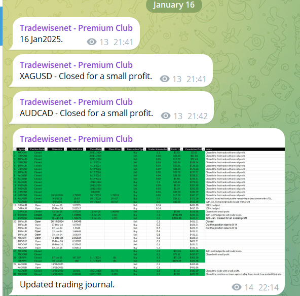 You can follow my daily trades and learn the strategies I use for trade management and hedging. The trades shall be posted on the Premium Club telegram channel.
